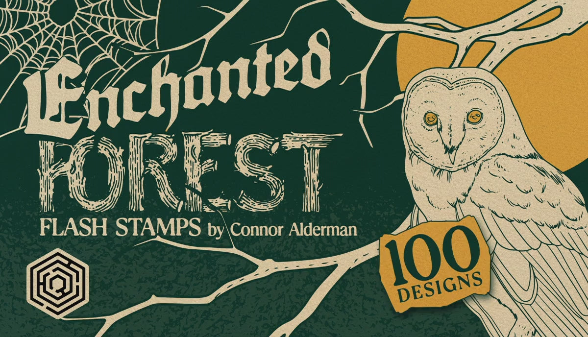 Introducing Enchanted Forest by Connor Alderman, a debut collection of 100 Procreate tattoo flash stamps. This set highlights Connor's unique ability to perfectly capture nature's imperfections and includes a variety of woodland creatures. From flowers like Black Eyed Susans, roses, and mums to mushrooms and a variety of branches, this set is ideal for ornamental and illustrative nature designs. Connor also included shaded skulls in multiple perspectives for wolves, owls, humans, horses, deer, crows, and coyotes.